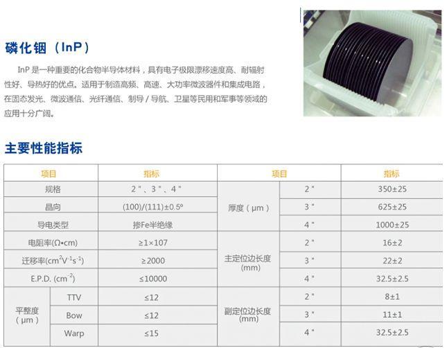 简要介绍 InP单晶材料作为最重要的化合物半导体材料之一,是生产光通讯中InP基激光二极管(LD),发光二极管(LED)和光探测器等的关键材料。